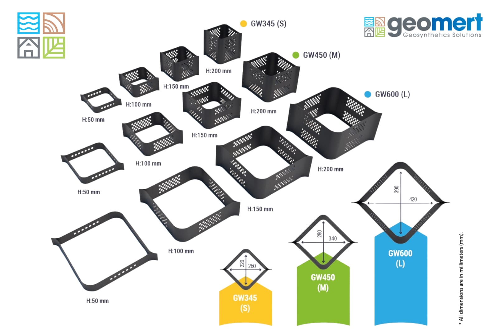 İçi boş yapısı ve tasarımıyla farklı tipte dolgu malzemelerinin kullanım imkanı sağlar. Toprak stabilizasyon uygulamaları, yeşillendirilebilir şev ve yatakların kontrol uygulamaları, yeşillendirilebilir istinat uygulamalarında, beton agrega dolgulu kanal inşaatlarında kullanılmaktadır.